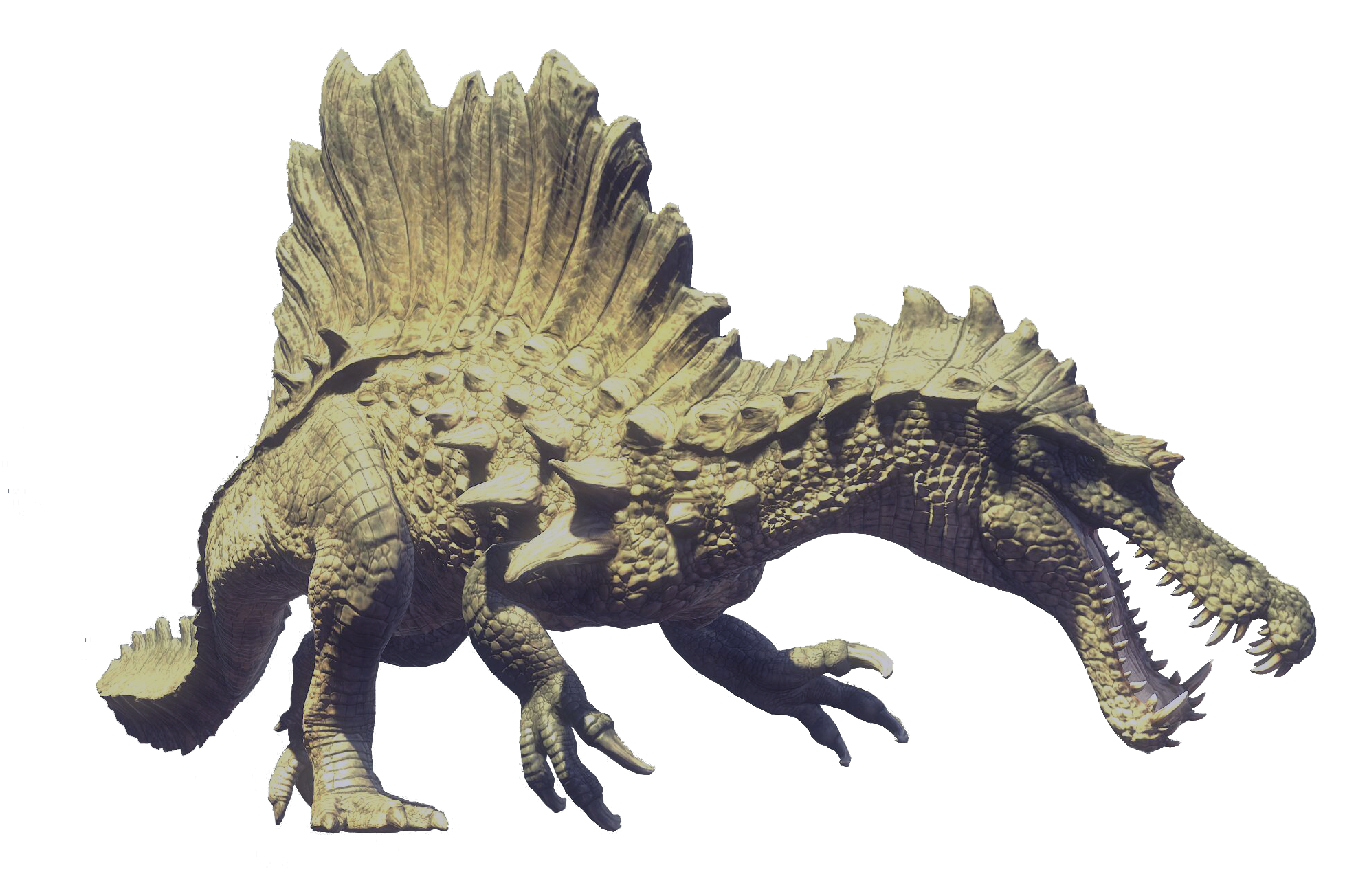 The largest carnivore in the Isle, the Hyperendocrin Spinosaurus is a powerful carnivore in its own right. It has two tusks to possibly inflict more damage on its prey or to grasp prey more effectively. It is able to walk bipedally and quadrupedally. It has a hard time while sprinting because of its small legs and heavy front.